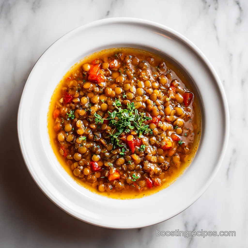 - Starch Gelatinization: As the lentils cook at a low temperature for 7 hours, their starches swell and eventually break down slightly, naturally thickening the broth into a velvety consistency without needing flour or cream.